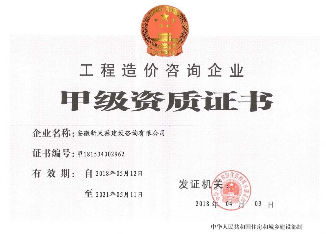 安徽新天源建設咨詢有限公司是一家全過程項目管理咨詢機構,重點開展PPP項目咨詢、BIM項目咨詢、招標代理、工程造價、工程監理、工程咨詢等業務。 公司成立于2003年4月10日,為股份制企業,現注冊資金5000萬元,辦公面積2200多平方米,法人代表崔敏。在成立同年,公司取得了國家發展改革委員會頒發工程咨詢資格證書,并成為安徽省工程咨詢協會會員單位。隨著近年來的不斷發展壯大,公司相繼取得了招標代理資質證書(工程招標代理資質資格證書、政府采購代理資格證書、水利工程招標代理資格證書、中央投資項目招標代理資質證書)。 2008年11月取得工程造價資質證書并成為阜陽市審計局審計協審定點單位; 2012年3月取得安徽省發改委固定資產節能評估資質證書; 2012年3月取得安徽省國土資源廳測繪資質證書; 2012年7月獲得安徽省經濟和信息化委員會第一批工業投資項目節能評估機構備案; 2012年9月取得水利工程監理資質證書; 2014年1月取得工程監理資質證書;現工程招標代理及工程造價已取得甲級資質,并開展了環境影響評價、工程測量、房地產評估等業務。